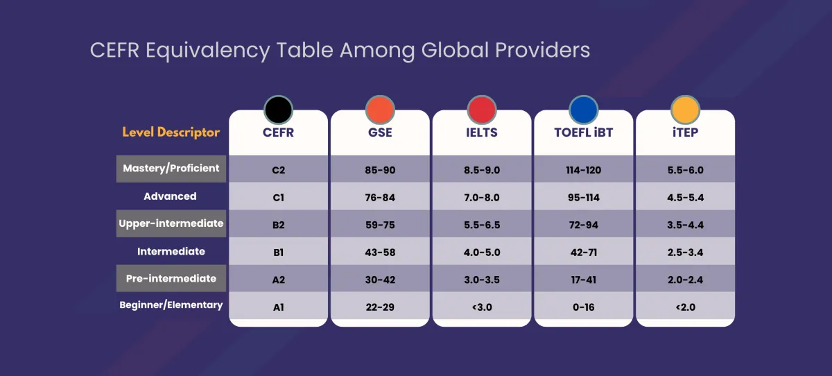 ESL (English as Second Language) in alignment to the CEFR levels of A1, A2, B1, B2, C1, C2)